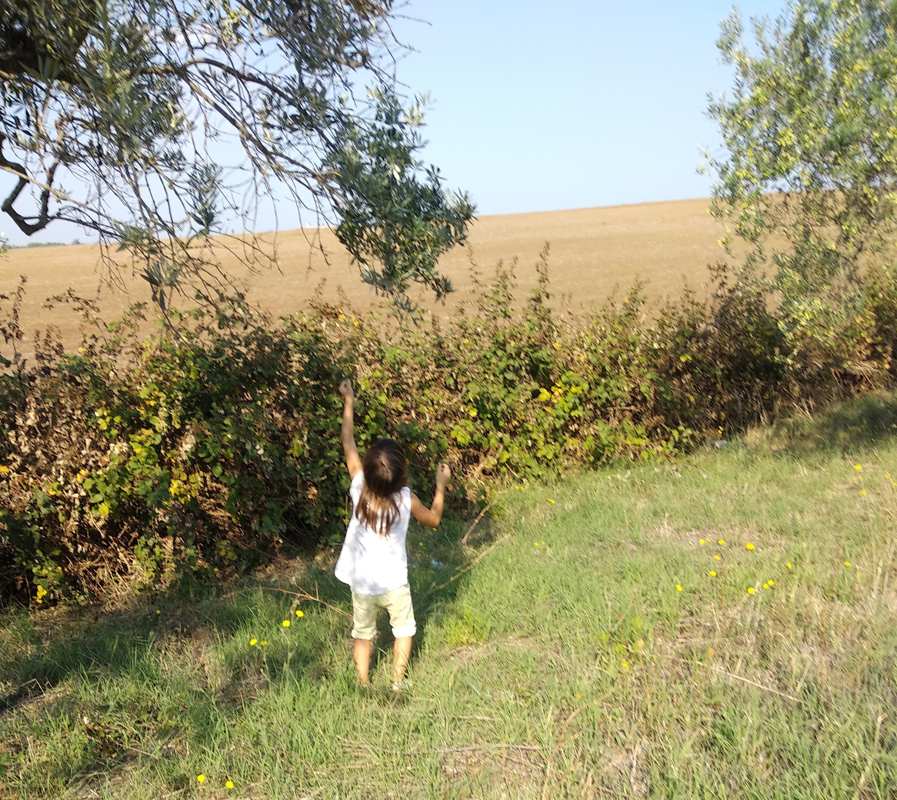 Fatto sta che io ho gioito quando, cercando il significato simbolico dell’olivo ho scoperto che questa pianta, oltre ad essere presente nella simbologia e nei miti fin dalla preistoria, oggi è emblema di pace, forza, fede, trionfo, vittoria, onore. E sapete quali altri alberi sono accostati in campo e nella simbologia all’olivo? Certamente il fico, simbolo di maternità e abbondanza, per via dei suoi frutti che ricordano materni seni turgidi che regalano “latte”, proprio come il liquido bianco che da essi fuoriesce. E guarda caso pure l’albero di fico abbiamo incontrato e osservato!