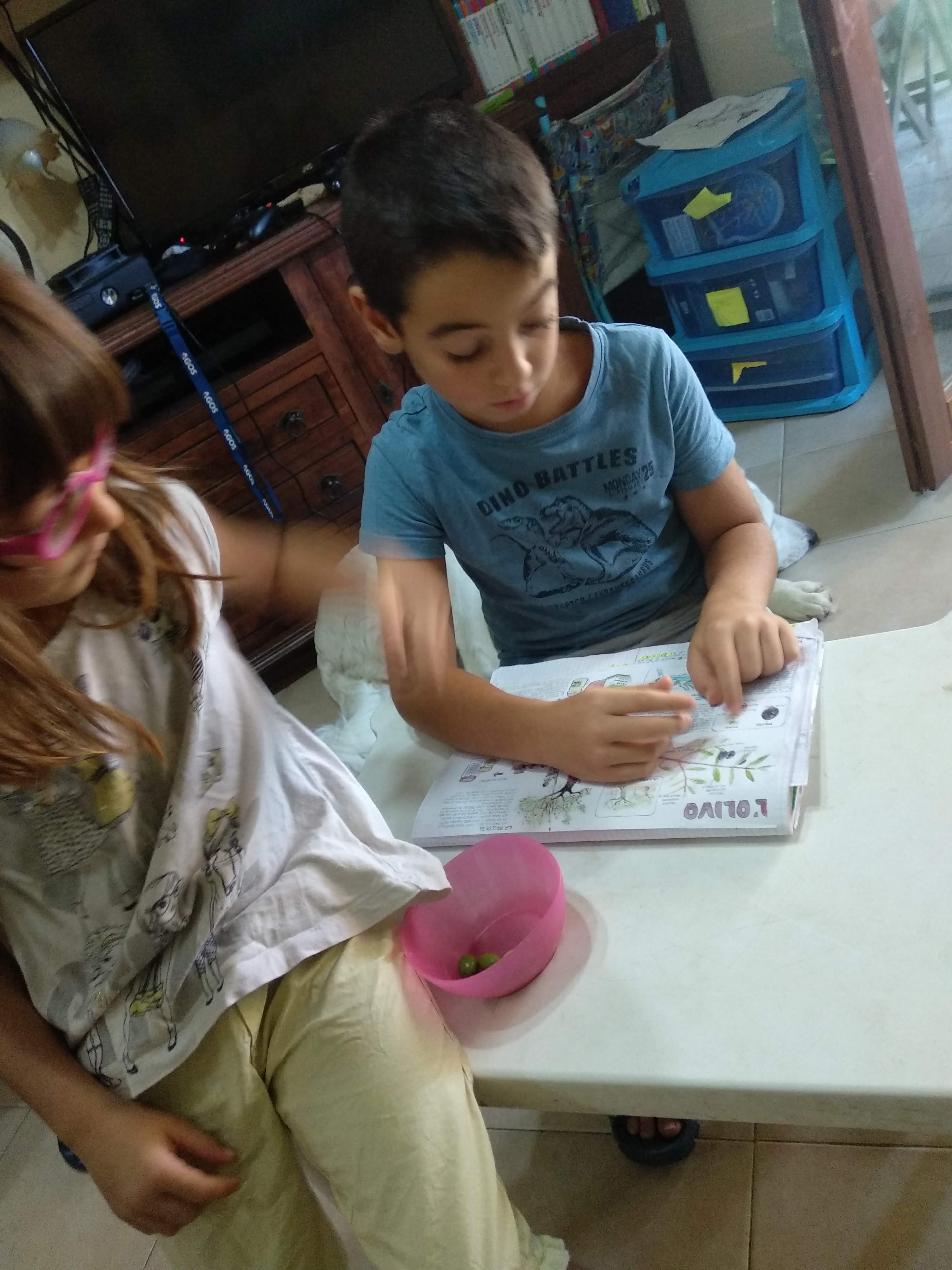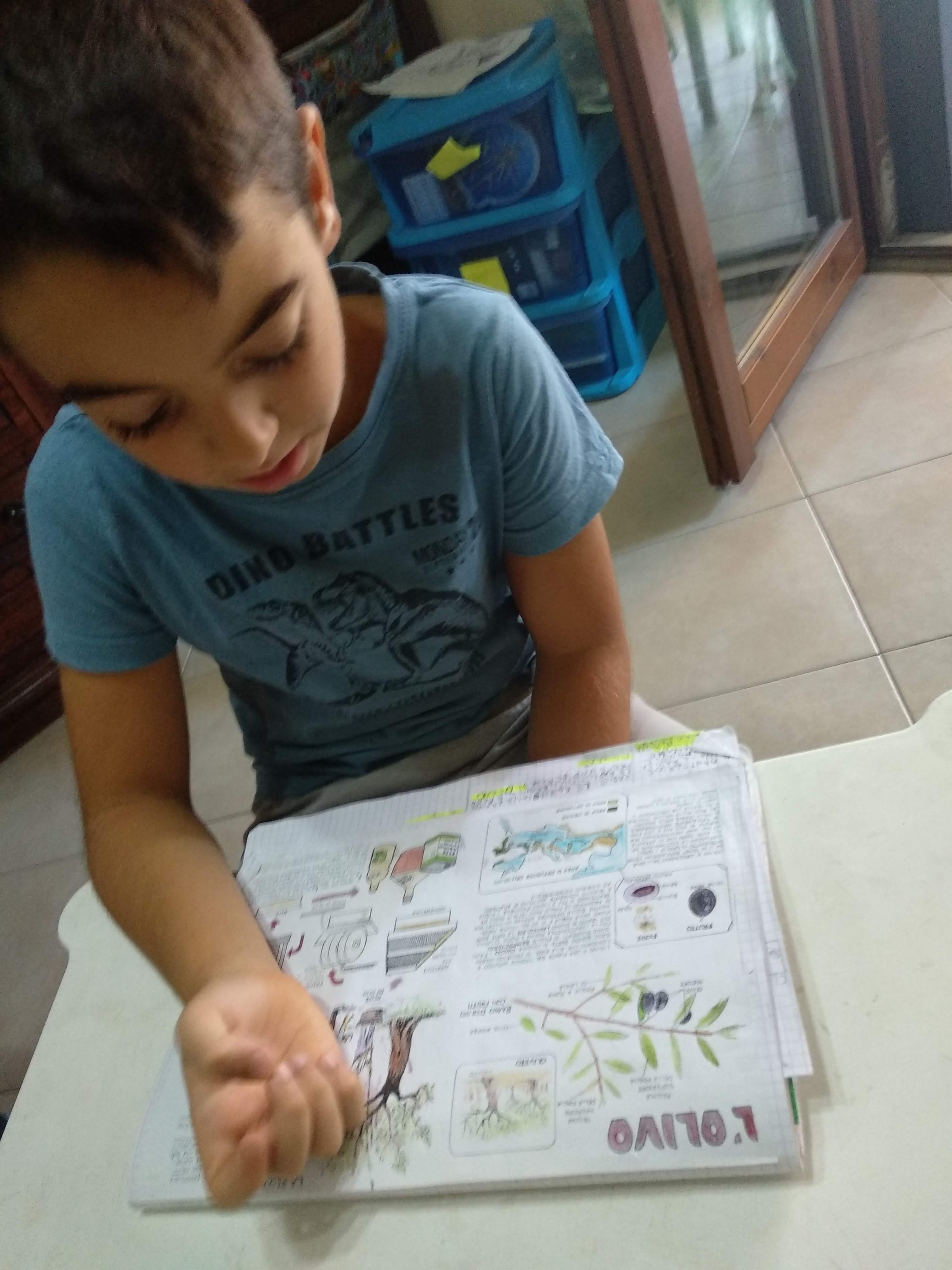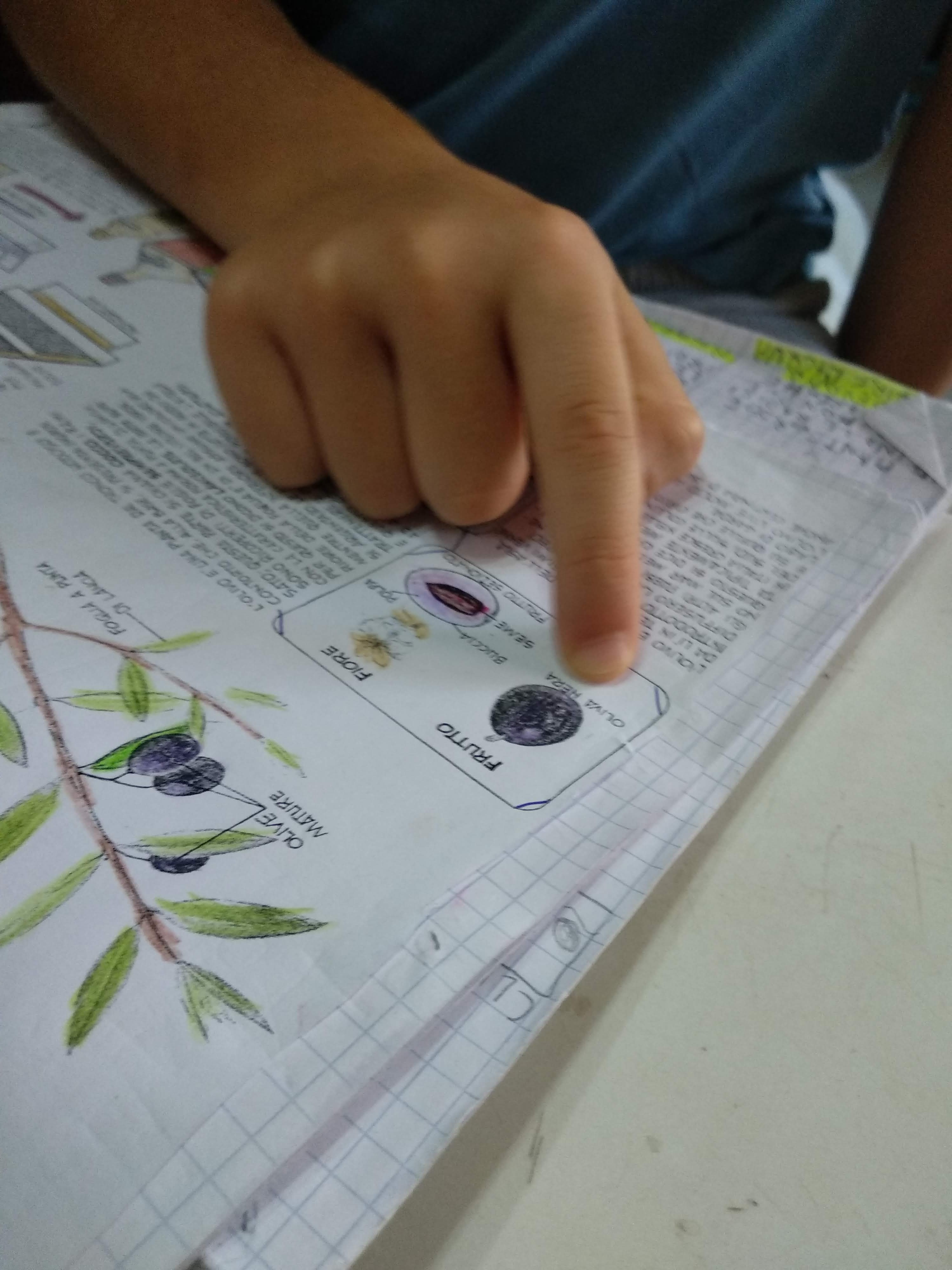 Scopro che l’argomento era stato già trattato a scuola, per cui il ragazzotto prende inorgoglito il suo quaderno e tra video, olive e appunti comprendiamo che il tempo per la molitura di sta avvicinando.