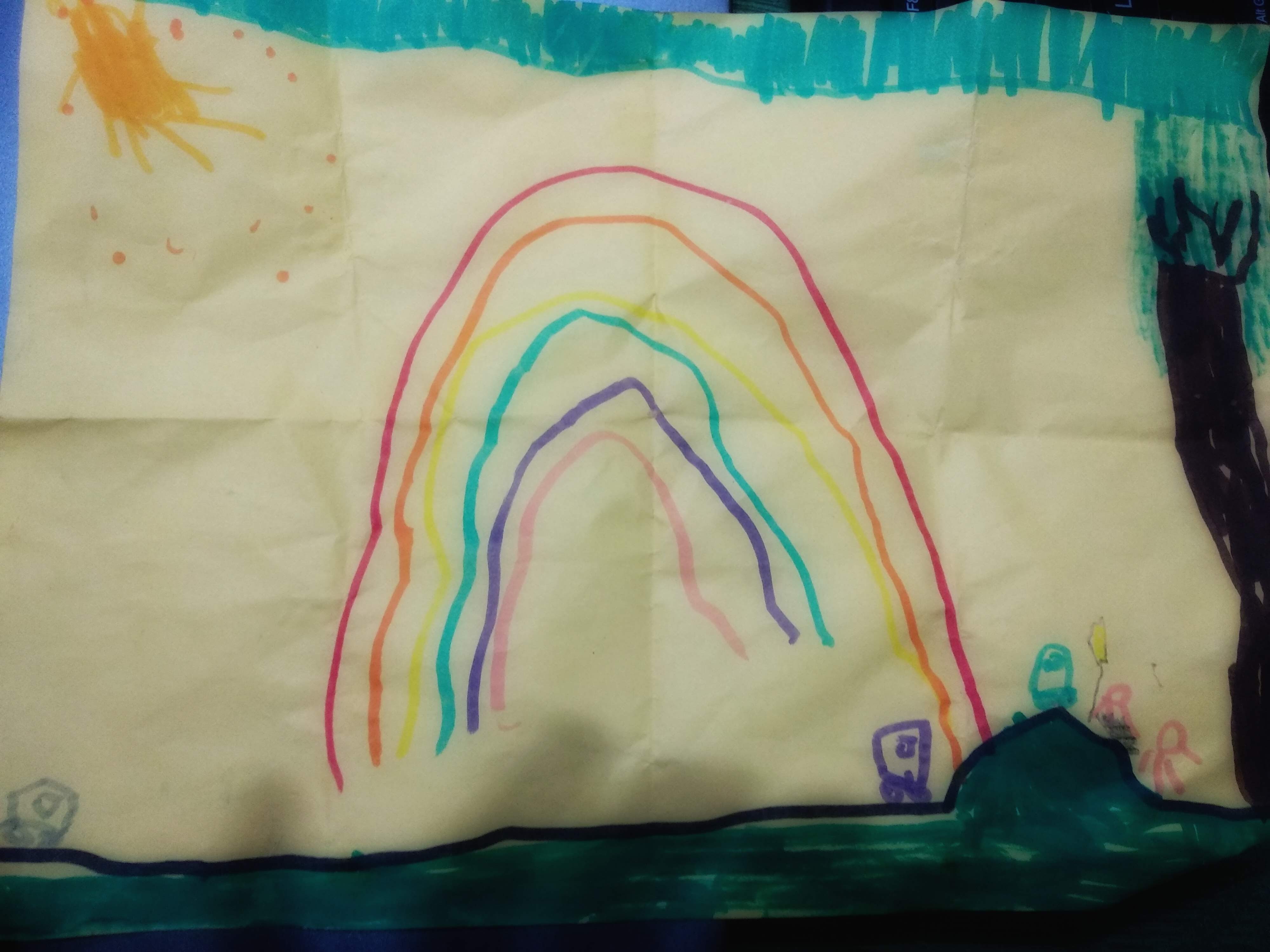 C’era una volta una bella bimba, solare e sorridente, che fece un disegno. Nella sua opera d’arte la bimba raffigurò delle auto che non riuscivano a camminare perché frenate da un dosso alto alto. Insomma queste automobili trovavano difficoltà ad arrivare dai loro amici Gorilla, che vivevano nel mondo dell’arcobaleno. Quando la fanciulla donò il disegno alla mamma, accompagnò questo atto di generosità con tale pensiero: – mamma, bisognerebbe vivere nel mondo dell’arcobaleno! -.