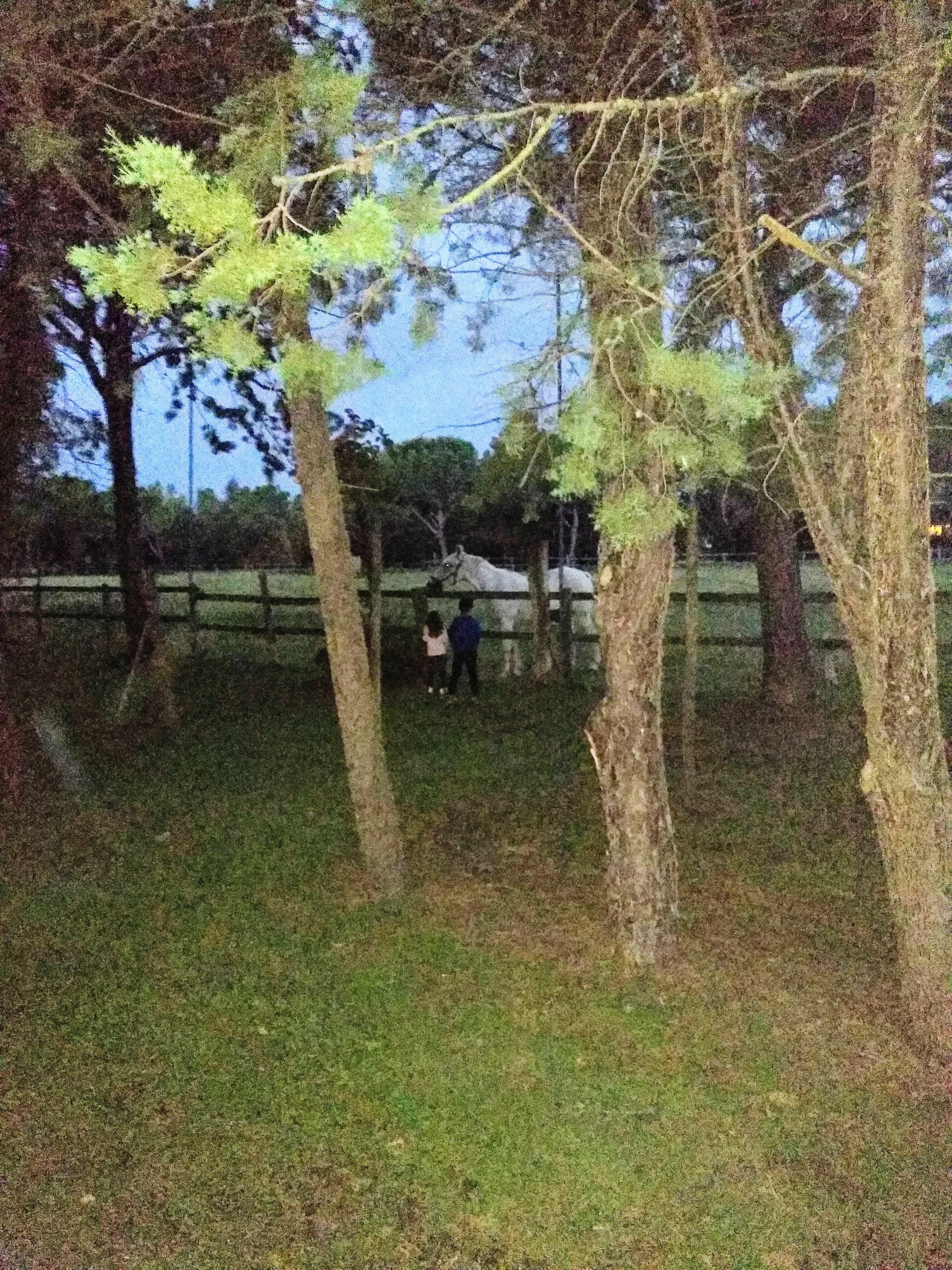 Anche i due cavalli che accolsero l’allegra famiglia nella tenuta deserta, erano tutti bianchi; forse erano due unicorni in incognito scivolati giù dall’arcobaleno? Boh! È certo che per le due notti che gli avventurieri passarono nel rifugio, la coppia di Pegaso non fece altro che vegliare su di loro.