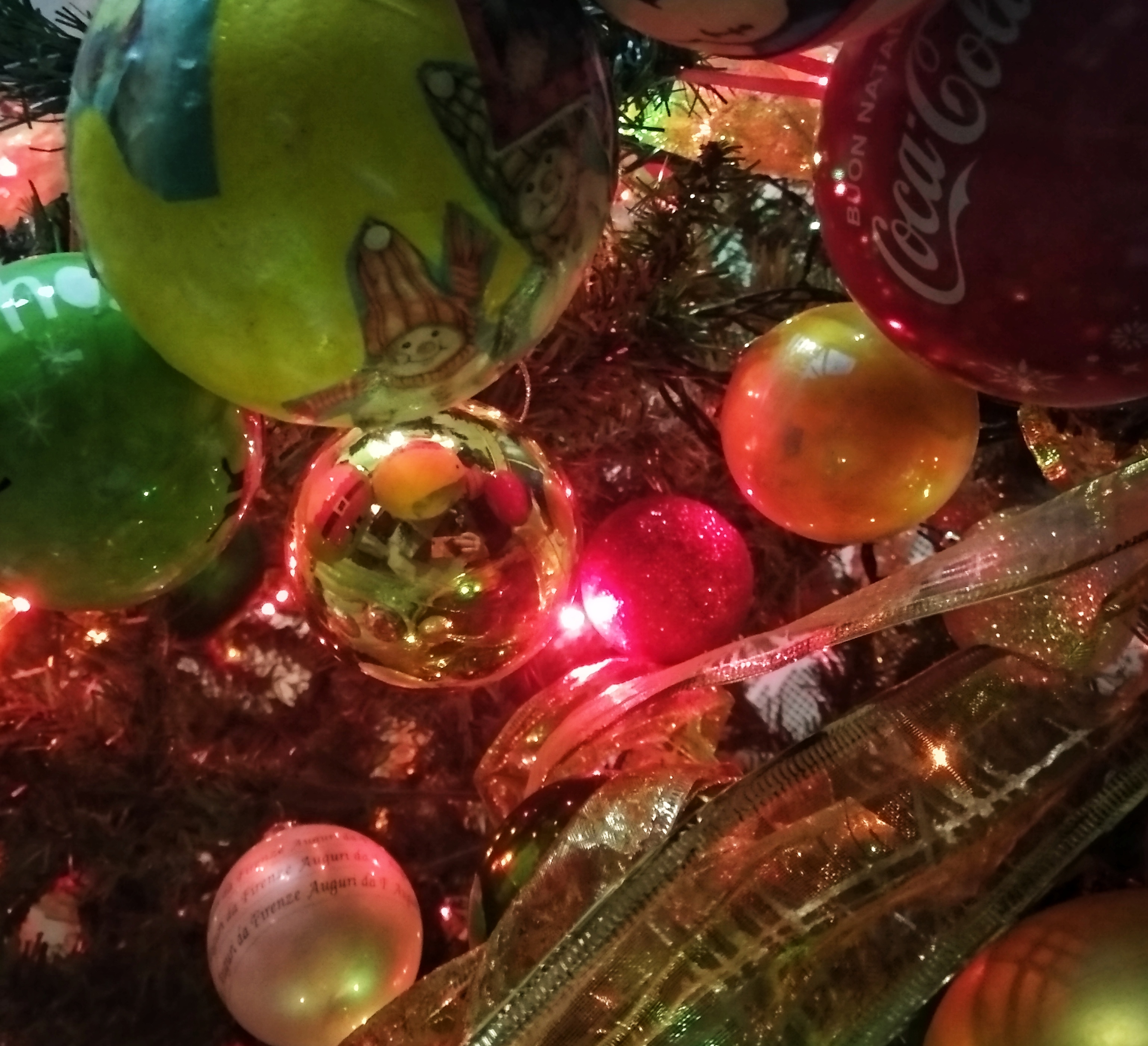 S’intenda, tutto l’ambaradan decorativo non ha nulla a che fare con quelle opere d’arte che si vedono in foto o nelle vetrine, eppure l’effetto finale ha un sapore così di appartenenza, cosi nostro, che è incantevole fermarsi a contemplarlo e gustarlo per rivivere i ricordi che ogni pallina o lavoretto reca in sé.