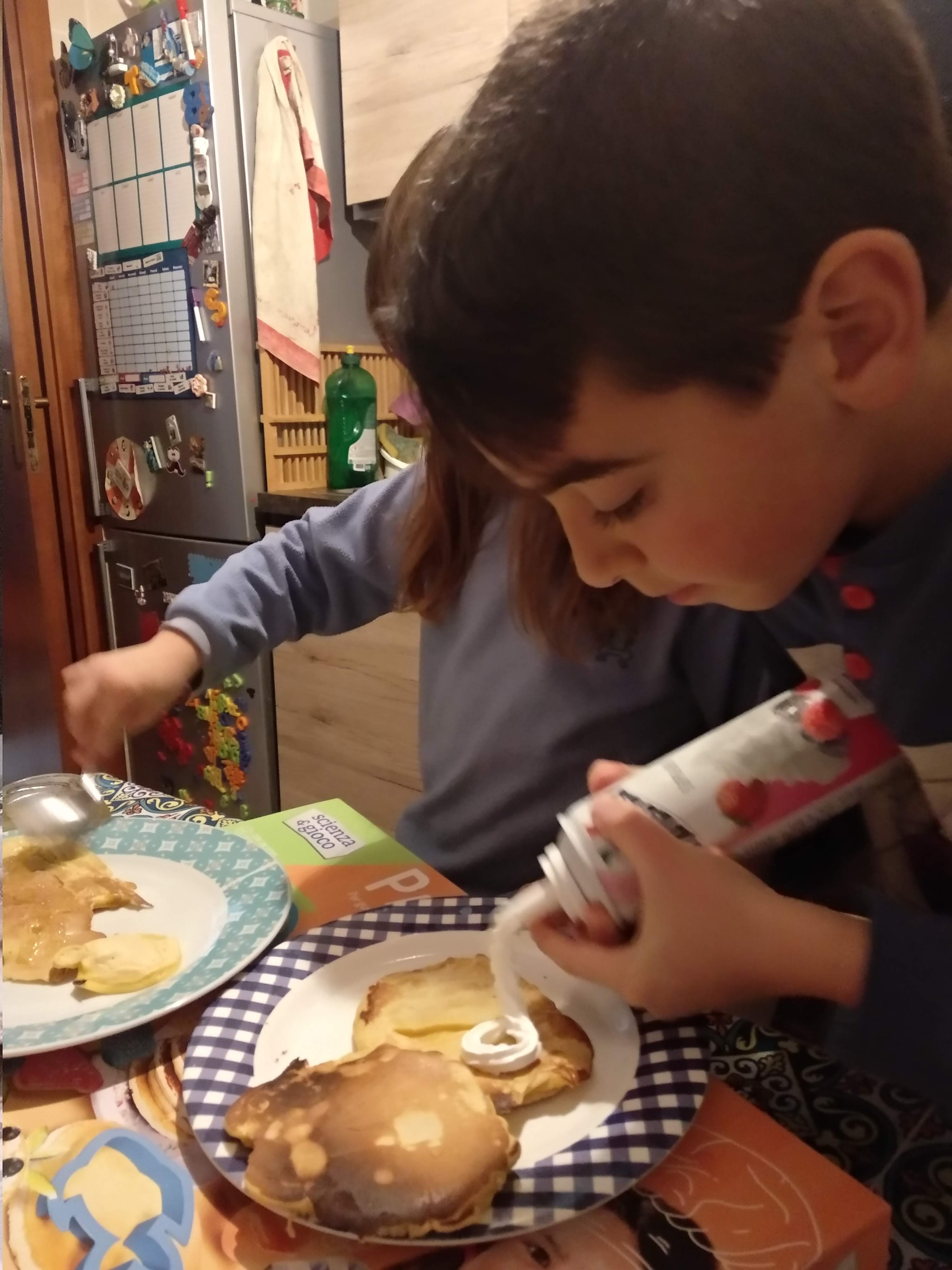Poi i tanti doni trovati sotto l’albero, sicuramente ci impegneranno per qualche ora: per esempio, tra la produzione chimica, ad alto rischio, di frizzabombe per il bagnetto e la prestazione di sublime cucina, che ci ha impegnati nella preparazione dei gustosi pancakes, vuoi che non si impari qualcosa?