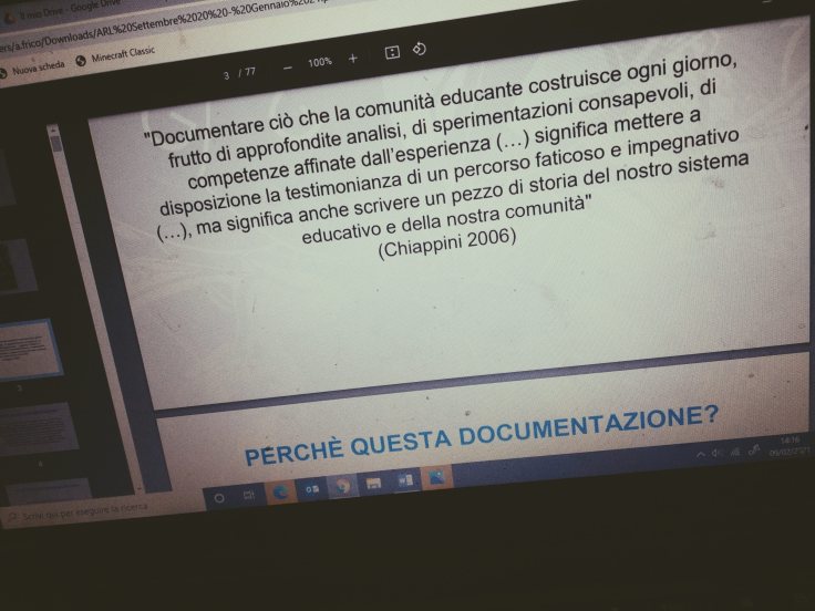 Oggi invece, in questa esperienza sperimentale condivisa (il mondo strano per capirci), l’universo dei miei figli viene raccontato, in tutta la sua bellezza e complessità, con ben 77 slide; in questo processo sistemico di crescita ricevo un vero e proprio dossier che mi rende partecipe e corresponsabile di questo laborioso percorso. Una bella differenza no?