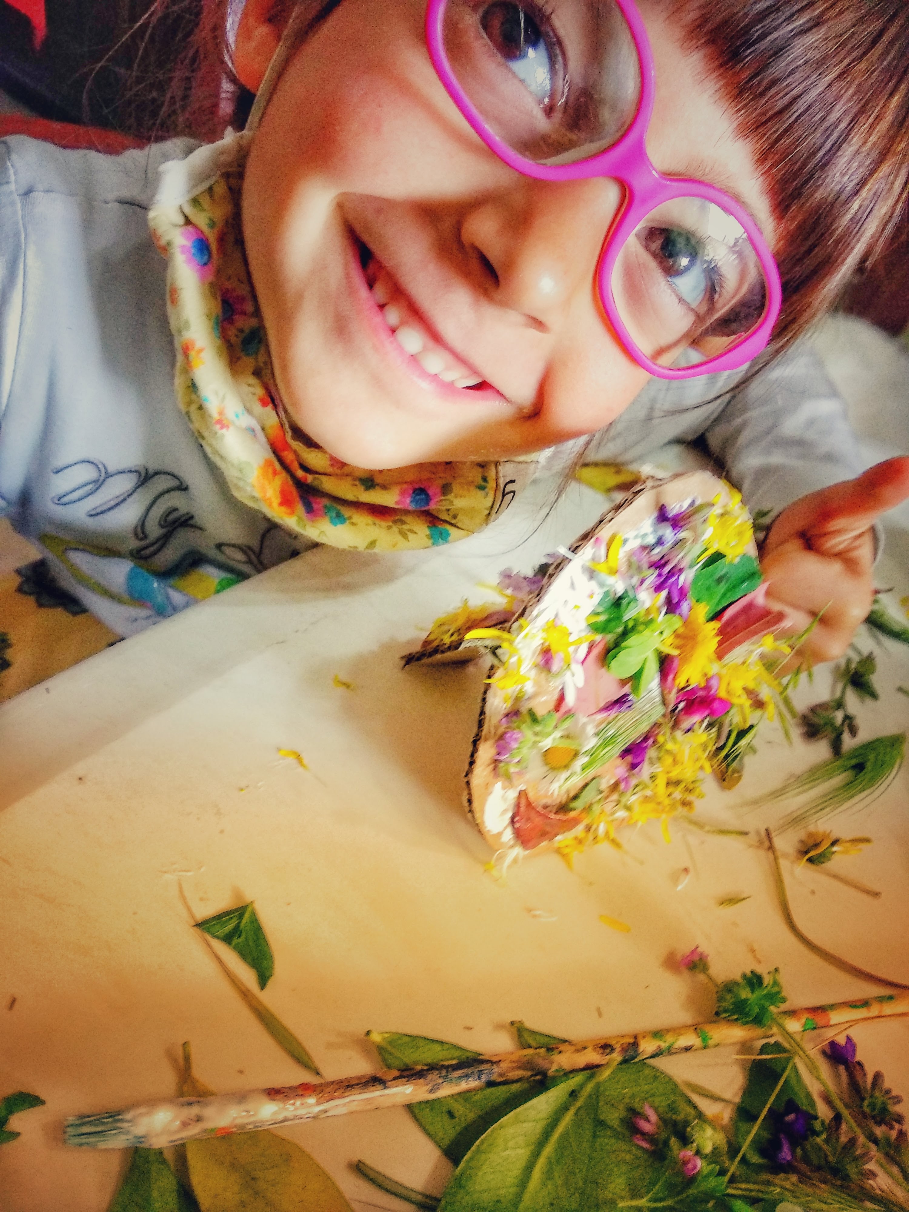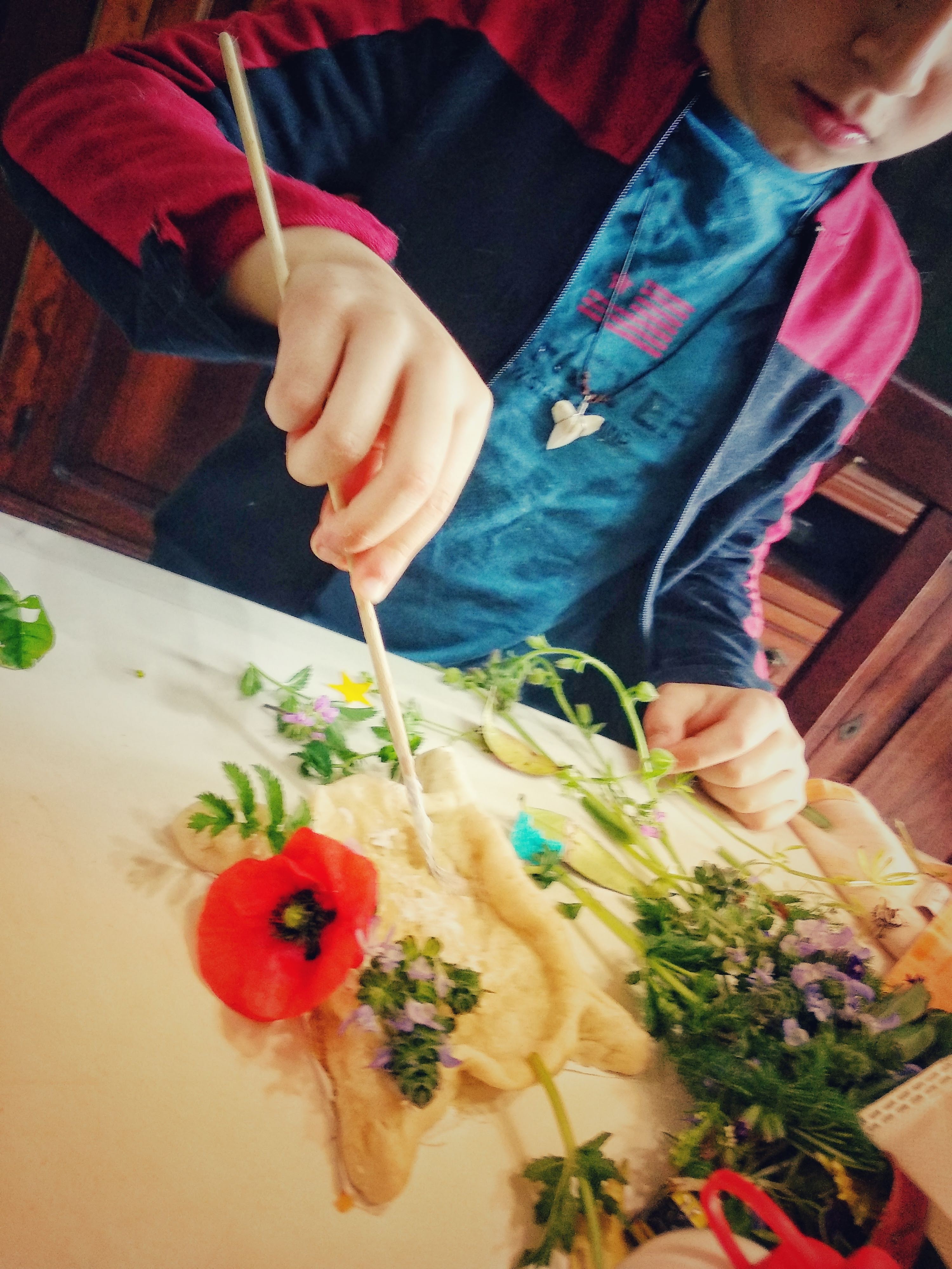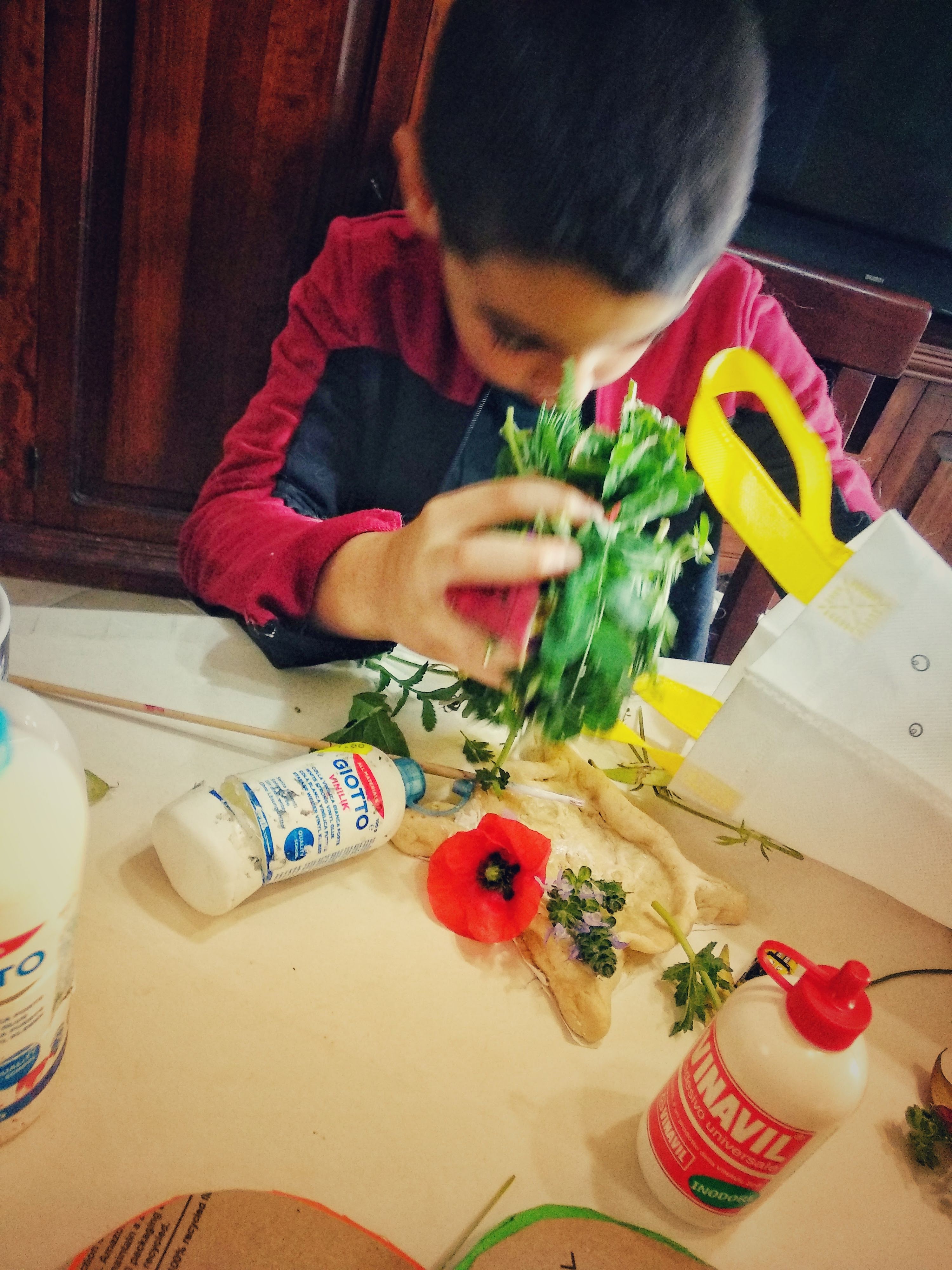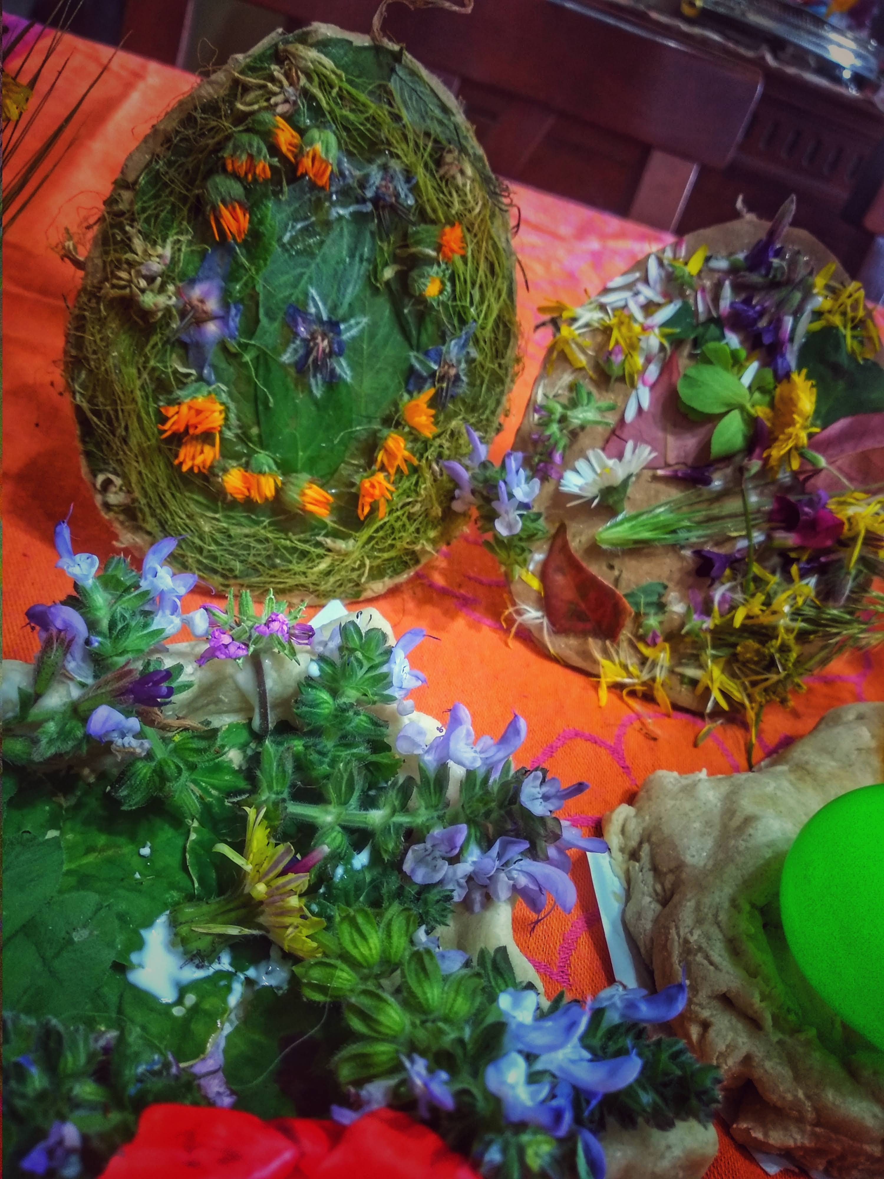 La giornata però è lunga, così abbiamo deciso di portare a casa e fare nostra la tecnica degli amici Gorilla, per continuare le decorazioni naturali delle uova e questo ci ha permesso di uscire a raccogliere il materiale e rilassarci tantissimo per comporle.