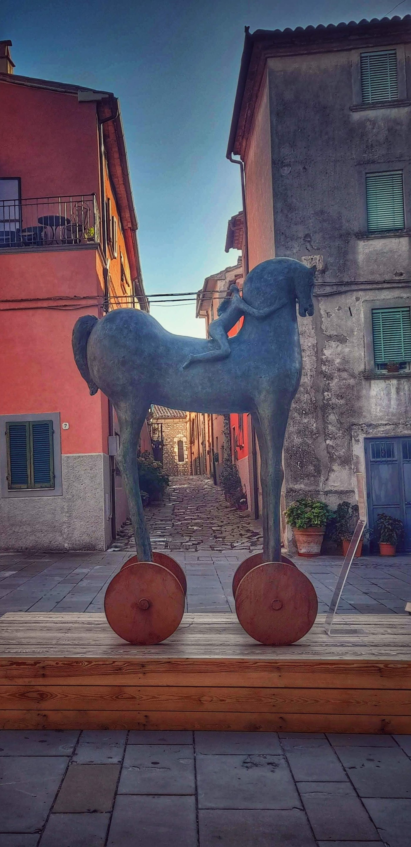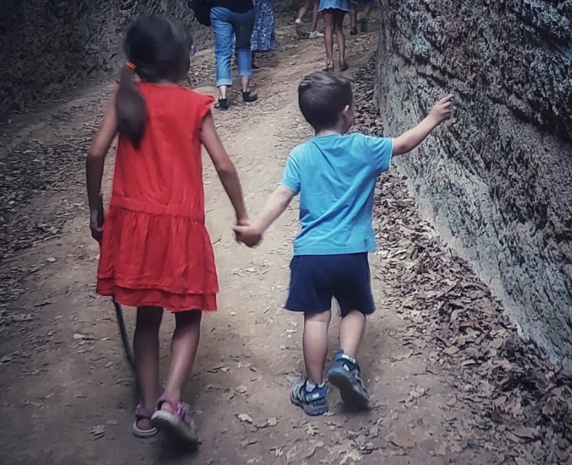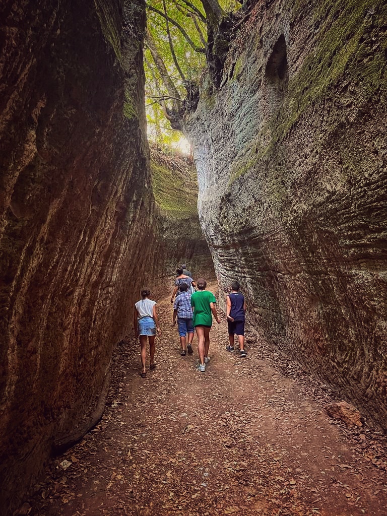 Questa villeggiatura ci ha permesso di divertirci, sia rimanendo seduti a raccontarci su un muretto, come facevamo da adolescenti, sia andando a spasso come improvvisati critici d’arte, riflettendo su moderne e psichedeliche elaborazioni artistiche di riciclo o sulla storia di antiche città etrusche.